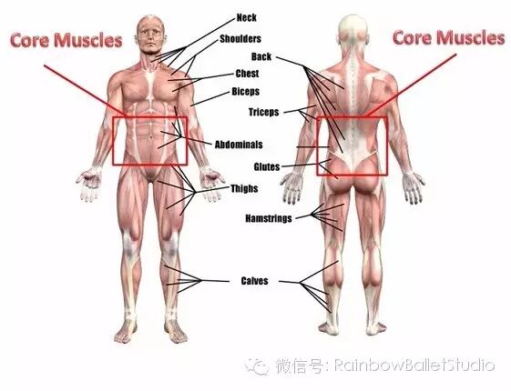 上个礼拜五的课上,我给大家介绍了舞蹈中core的重要性,也就是两条“马甲线”中间的部分啦。Core的能力很大程度决定了肢体的把控性。比方说做rond de jambe地面画圈圈的时候,如果core不够强壮,主力腿和上身就会因为动力腿的动作而摇摆不定,不仅失去了美感,动作也没有质量。那我们今天就来学习如何增强core strength!