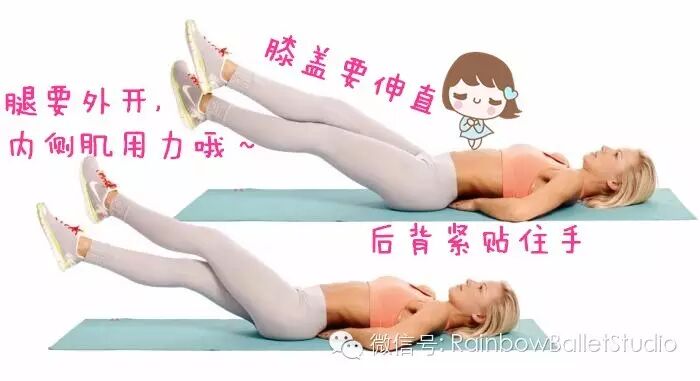 注意:后背稍稍起来一点就可以,不用头碰膝盖这么卖力啊,反而失去了锻炼的价值~~