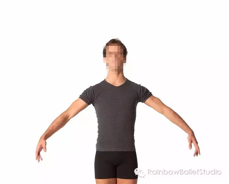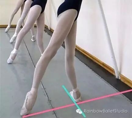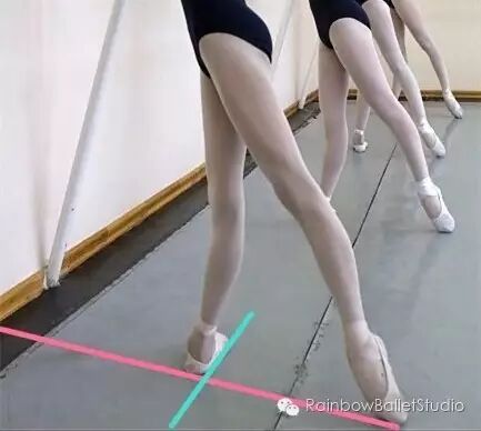 我们先说腿部的运动轨迹,暂时忽略手上动作。芭蕾中的行走往往从dégagé derrière (下图所示)的位置开始,想想Rainbow为什么在地上画了两条垂直线哦。