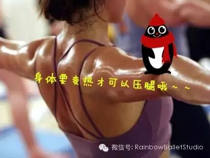 上周我们学习了grand battement,今天我们有必要仔细说说这个话题。在做大踢腿之前,同学们还记得我们做了什么吗?是一系列的把杆活动,从蹲,擦地,一直到慢板的développé和压腿,目的是让身体变得更具柔韧性,肌肉只有在热的时候才可以压腿,否则非常容易曹成肌肉撕裂,尤其对于成年人。对于成人舞者来说,正确地压腿方式是控制在可忍受范围的酸疼,而不是撕心裂肺的呐喊啊,所以大家一定要循序渐进哦。
