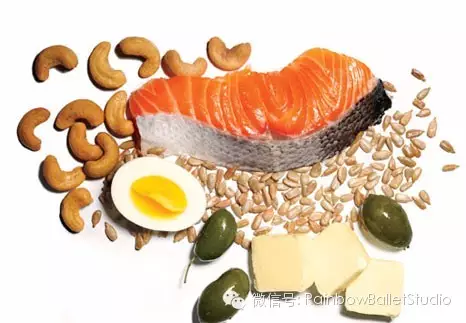 脂肪参与细胞膜的构成,不仅是多种荷尔蒙的基础,同时也是重要的能量来源,每公斤体重大约需要1.2克脂肪。由于高脂肪饮食与许多慢性疾病相关,所以建议每餐饱和脂肪(肉类,乳类)应低于10%。脂肪是以甘油三酯的形式储存在肌肉内,运动时,甘油三酯转化为脂肪酸,通过新陈代谢提供热量。脂肪酸的燃烧常出现在耐力性运动中,跳舞20分钟后,脂肪才开始参与代谢。所以同学们,如果以减肥为目的,每次运动一定要坚持20分钟以上哦。脂肪摄入不足,会影响荷尔蒙,皮肤会变差,血液循环差,凝血功能也变差。